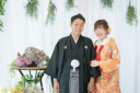 和装での正座ショットに続き、洋装でもご結婚を報告するアイテムを使った一枚を。ウェルカムボードやご挨拶状など、お写真の使い道を考えてから撮影に臨めると良いですね!