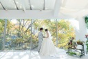 紅葉に囲まれておでこを合わせるお2人。紅葉もお2人もとても綺麗ですね☆