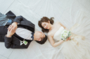 かしこまった婚礼衣装ではなくナチュラルなリンクコーデで撮影されたお2人。とてもカワイイですね!!