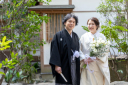ご新婦様はゴールドの筥迫と刺繍襟をプラス、ご新郎様は色紋付のグレードアップオプションをお選び頂き素敵なコーディネートが完成しました♪