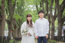 恥ずかしさもあって思わずはにかみ笑顔なお二人が微笑ましいです・・!