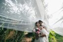 沖縄の植物に囲まれた撮影で大人な雰囲気を演出。その後ビーチでポップな撮影も♪ 300枚以上の写真データを納品できる充実プランです!