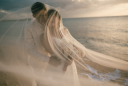 ウェディングフォト撮影のシルエットショットは、光と影が生み出すドラマチックな雰囲気が魅力。シンプルながら幻想的で、感動的。ザネー浜ならではの一枚。