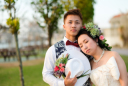 二人ともとびっきりの笑顔でパシャリ♡たまにはオモシロポーズの写真もいいですよね。
