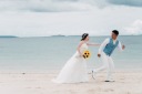 青い海・空・白い砂浜に囲まれたフォトウェディング♪サングラスをかけてかっこよく撮影