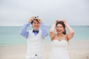 シンプルビーチプランでお申し込みのお二人。シンプル撮影と言っても120カットなのでおトク感あり♪お二人のお好きなポーズに加えカメラマンが提案しながら撮影(^^♪
