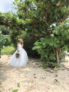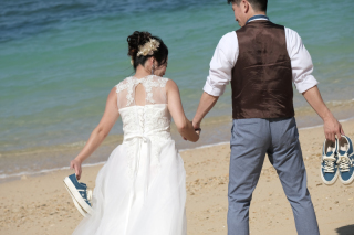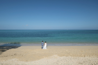 撮影の前日まで天気あまり良くなかったですが、当日の天気はとてもよくで、沖縄綺麗な空と海がちゃんと写っていました。また、海にも入って、楽しい笑顔の写真もたくさん撮れてとても満足でした!