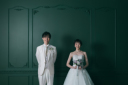 深みのあるグリーン背景で,おふたりが寄り添い合う印象的な一枚。落ち着いた色合いが表情を引き立て、クールな雰囲気に‥。