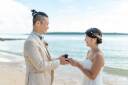 リングをはめて、手元メインのショット。お二人の大事なリングも海をバックに撮るとなんだかさらにステキです