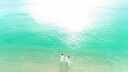 ドローンに手を振るお二人❕普段とは違う角度から宮古島のステキな海が見れます