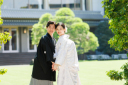 明治記念館の挙式会場「庭園の儀式殿」で撮影が叶う!和装もドレスも映える素敵な空間で心に残る1枚を。