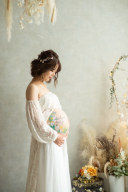 撮影ブース3つ目!グリーンに囲まれたマタニティフォト!可愛い♡