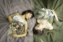 スタジオウェディングならではの寝転びショットはふわふわのチュールがまるでプリンセスのようです♡