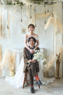 ペットとスタジオウエディングフォト