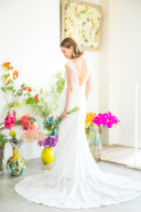 ボタニカルスタイルの背景で撮影。モデルさんのように綺麗な花嫁さま❤︎マーメイドドレスも大変お似合いでした!