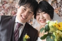畳に上がり、正座ショットを撮影しました!お二人の間には、ピンクのハートがあります!