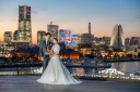 コンクリートの壁にお二人のシックな衣装が映えます。