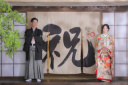 屋内庭園での撮影スタートです!青色のお着物が似合いますね!