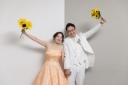 ひまわりのブーケを持って笑顔の姿はご新婦様の雰囲気にぴったりでした!