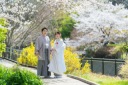 桜が満開の中撮影をしたお二人!どこで撮影しても綺麗なお写真になりました!