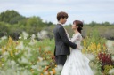 たくさんのコスモスに包まれてお二人が寄り添いあっている温かな1枚!