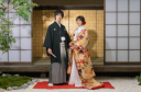 和装と相性抜群の椿背景での1カットです。お二人、しっとり系もお上手です。