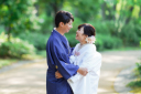 光がさして緑が生き生きとした公園での撮影でした。緑が本当に綺麗です。