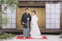 新婦様が新郎様越しにお顔を出して可愛らしいショット!いい笑顔です!