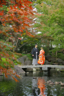 和装にぴったりな屋内庭園で撮影しました! ブーケも一緒に世界に一枚しかない写真を残しました