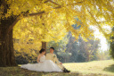 ベンチに座っているご新婦様を優しくリードするご新婦様!公園ならではの風景もオススメです!!
