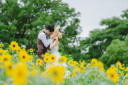 藤の花の素敵な雰囲気の前で可愛く仲の良さを表現しております
