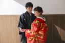 シンプルな白の背景の前で、見つめあったお写真を残しました!