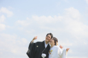 お二人のポーズを決めて桜と一緒にハイチーズ!笑顔が素敵ですね!