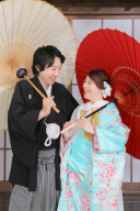 縁側に腰掛けたショット!最初から最後までずっと笑顔のお二人!ありがとうございました!