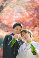 ご新婦様のソロショットをお撮りした場所も紅葉のグラデーションがきれいです!