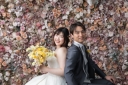 本日はハウススタジオで洋装撮影のご紹介です♫まずはフラワウォールの前で、ご新郎様からブーケのプレゼント!