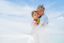 ウェディングブーケを持ちながら 美しい空と海に包まれる時間