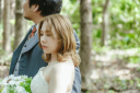 森の中へと歩みを進めるおふたりの後ろ姿