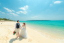 海に架かる大きな橋は宮古島と来間島を結ぶ『来間大橋』。この日はそんな素晴らしい景色が楽しめる『与那覇前ビーチ』での撮影⭐︎おふたりも綺麗な海に見惚れています♪