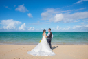 とても絵になるお二人(*^^*)青い海も空も、お似合いでした♪末永くお幸せに~♡