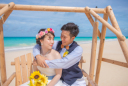 曇っていても、海は青いのが宮古島の海の特徴♡柔らかい色のブルーもキレイ!そして、スタイル抜群な素敵なお二人!!