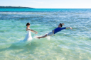 日差しもある夏のビーチでの一瞬をカシャ!白い砂浜青いビーチ、まさに宮古島の風景ですね
