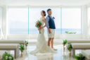 宮古の透明感たっぷりの海をバックに、新婦様のみのソロショット。シンプルながらも綺麗な一枚に仕上がっていますね。