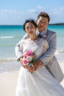 ビーチで撮影後、リラックスした表情でチャペルへ入場する新郎新婦