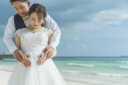 ビーチへ移動したおふたり 遠くに見える海がとてもキレイに映える
