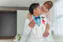 チャペルでの撮影からスタート そっとキスを交わすおふたり