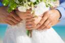 そっと後ろから包み込むように優しくハグするご新婦様の姿を