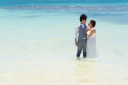 自然に身を任せながら 海の中へドレス、タキシードのままダイブ