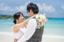 海の青が伝わってくる、美しい光景 光と共に、輝くおふたりの姿を