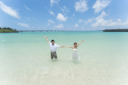 繋ぎながら 浜辺を一緒にお散歩タイム 空と海だけの世界